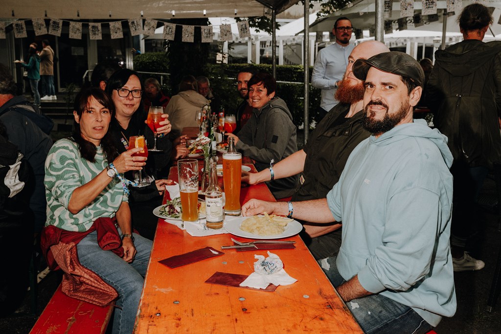 Das beliebte Dankeschön-Fest, das traditionell von der Mitarbeitervertretung (MAV) und dem Vorstand gemeinsam ausgerichtet wird, fand auch im Jubiläumsjahr wieder im gemütlichen Biergarten am Stettener Sportplatz und in der benachbarten Turnhalle statt. Trotz des bescheidenen Wetters sind viele Mitarbeitenden der Einladung nach Stetten gefolgt und haben die Gelegenheit zur Begegnung mit Kolleg*innen und zum Feiern gerne genutzt. Ein großes Helferteam aus MAV-Mitgliedern und Führungskräften aller Bereiche sorgte für das leibliche Wohl und den passenden Rahmen.