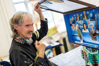 Sparda-Bank Waiblingen spendet 2.500 Euro an Kreative Werkstatt der Diakonie Stetten - Mitarbeiter der Sparda-Bank erhalten Einblicke in die künstlerische Arbeit.
